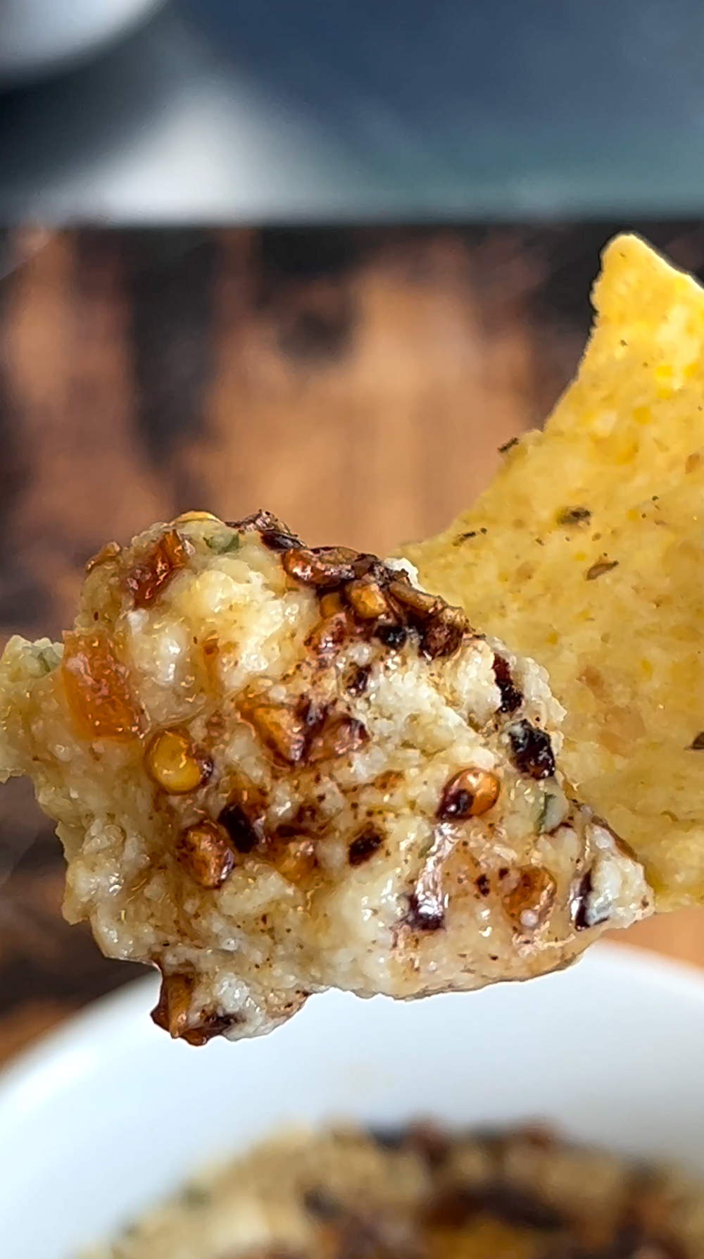 - Add a thin layer of chili crunch (add more/less depending on desired spice level)
