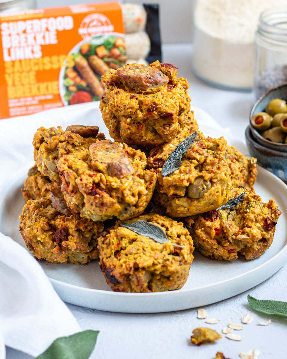 - Fold in the Brekkie Link Sausages, sun dried tomatoes, and olives.